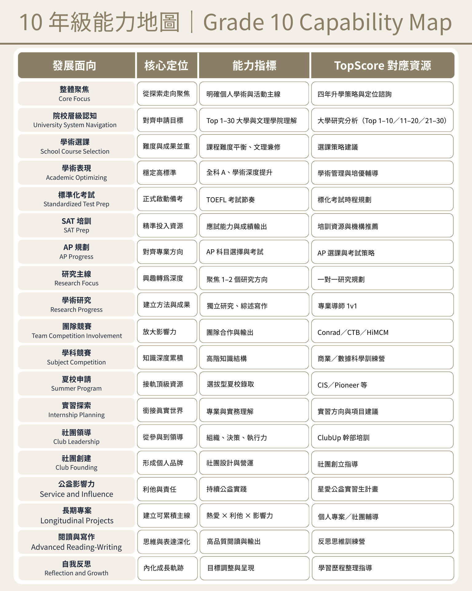 10 年級能力地圖|Grade 10 Capability Map