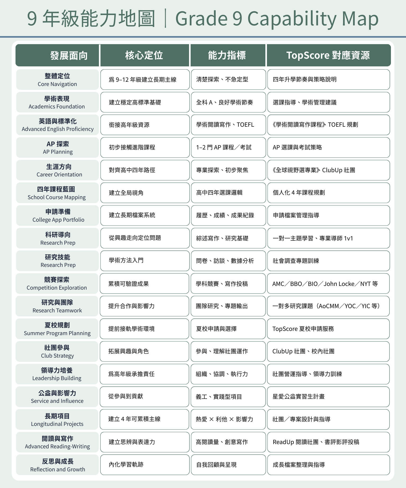 9 年級能力地圖|Grade 9 Capability Map